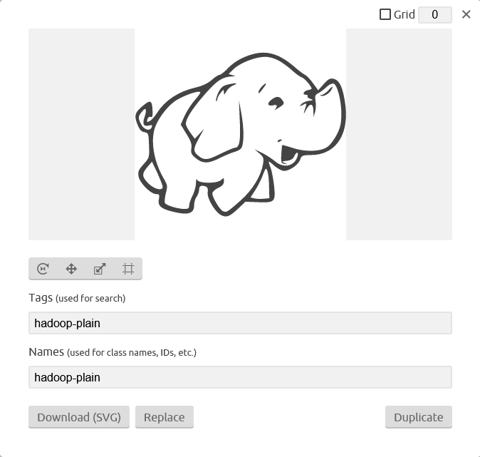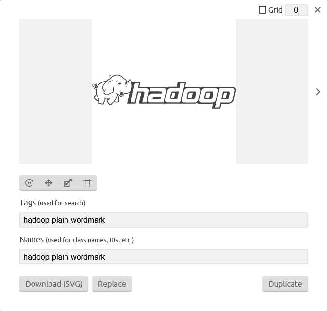 Remastered iconsNew iconsSource: https://svn.apache.org/repos/asf/comdev/project-logos/originals/hadoop.svg |