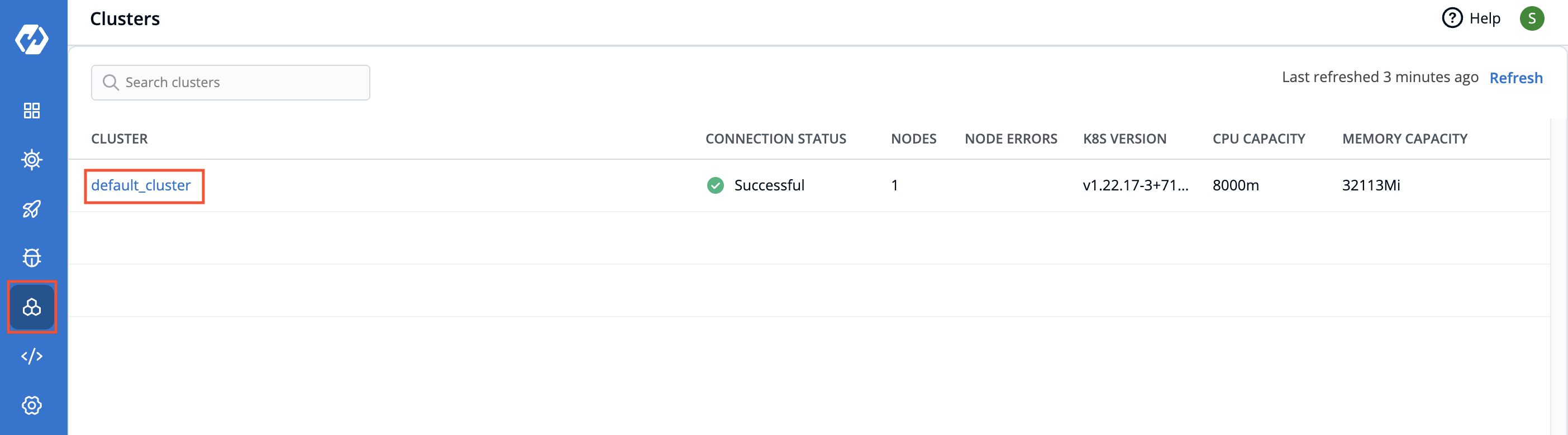| 7 | +On the left navigation of Devtron, select `Clusters`. You will find the list of clusters in this section which you have added under [Global Configurations > Clusters & Environments](https://docs.devtron.ai/global-configurations/cluster-and-environments). |