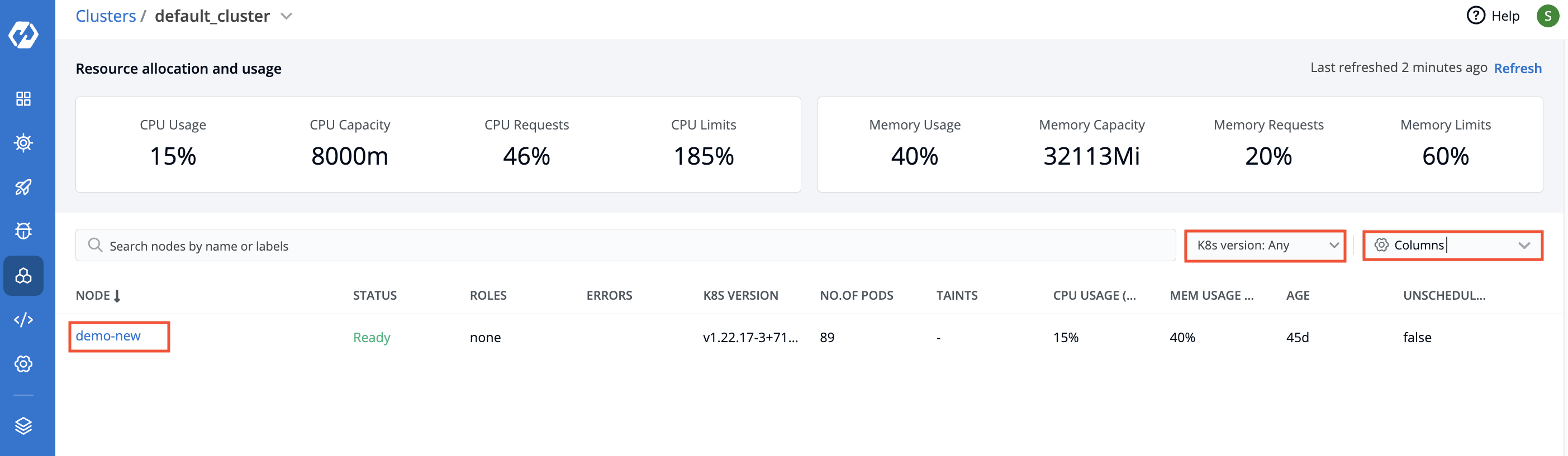 | 18 | +| **K8s Version** | Shows the version of Kubernetes cluster. | |