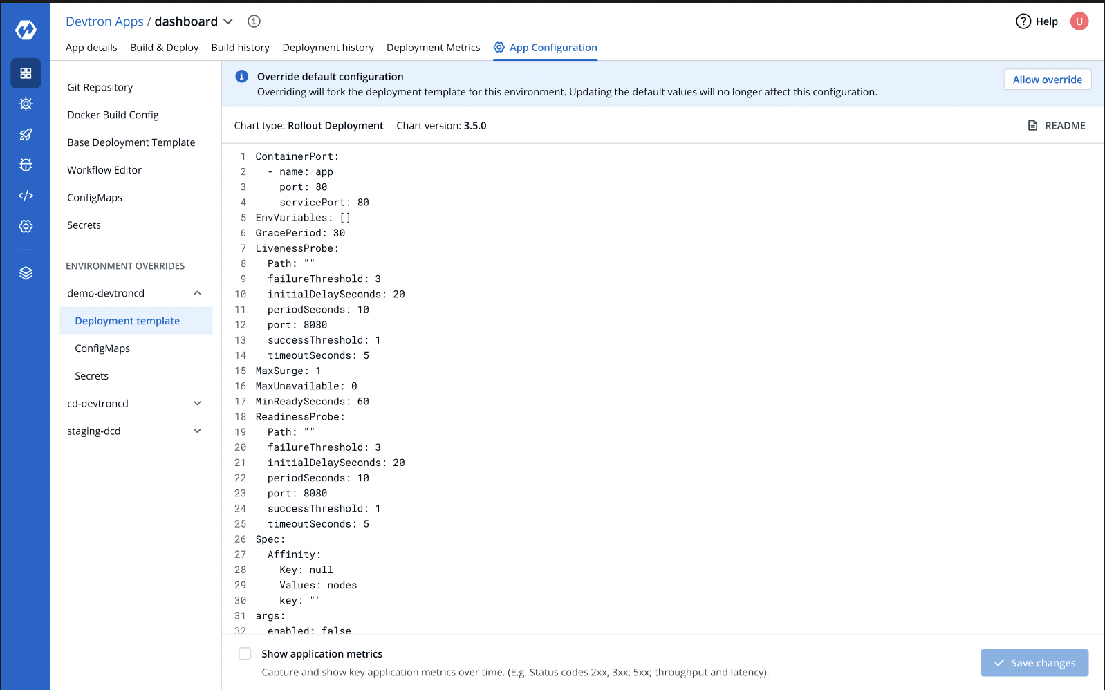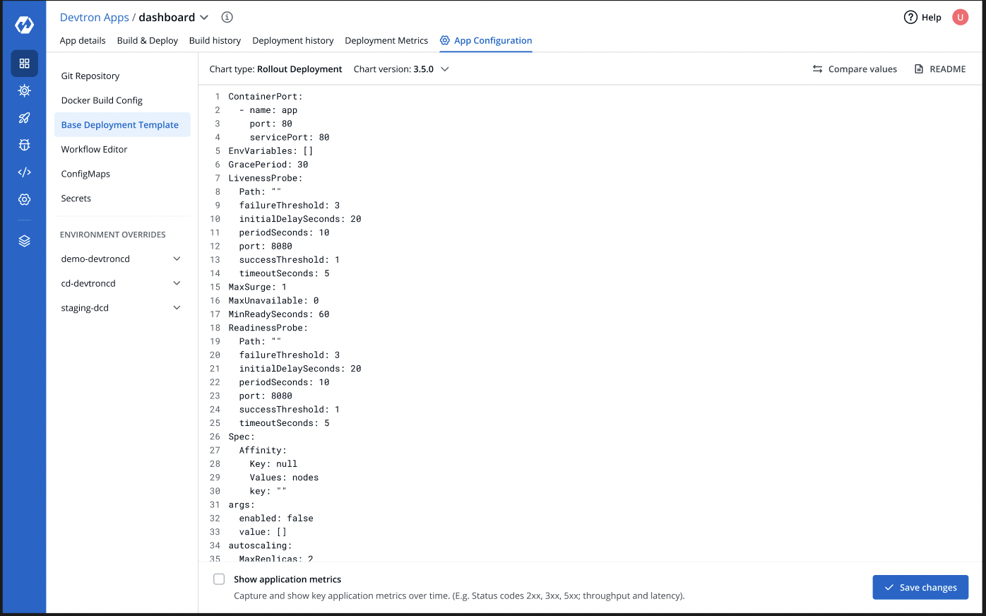 - Allow users to compare deployment templates (base and override) with other deployment templates so that they can configure values.yaml easily