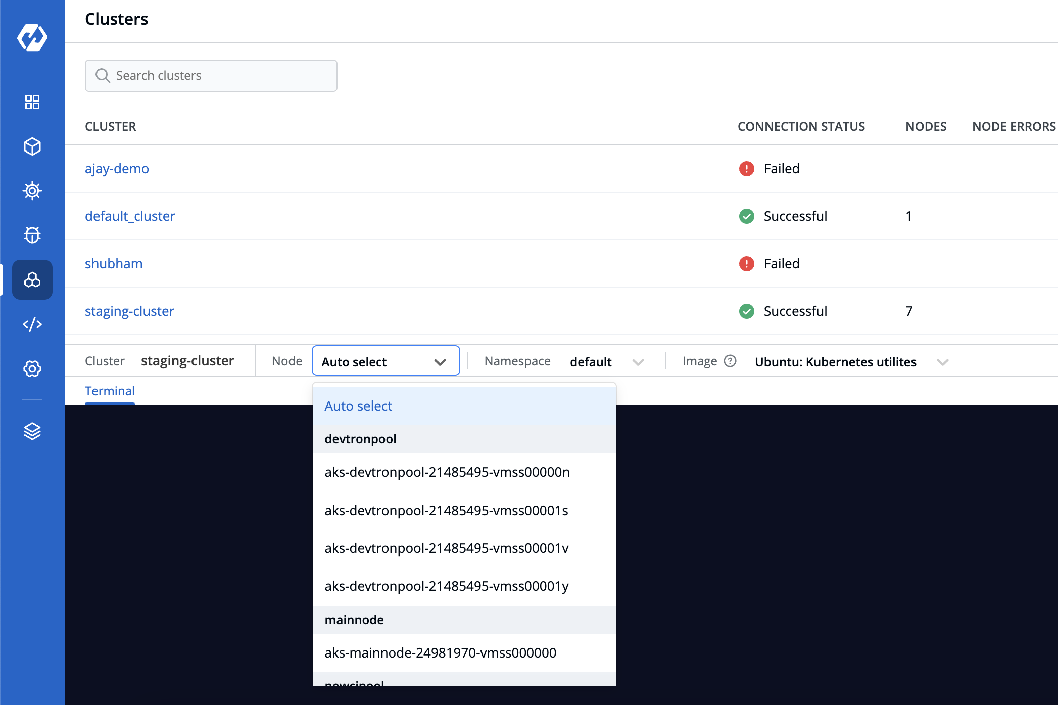 - Cluster terminal: Auto-select a node on which the terminal can be launched