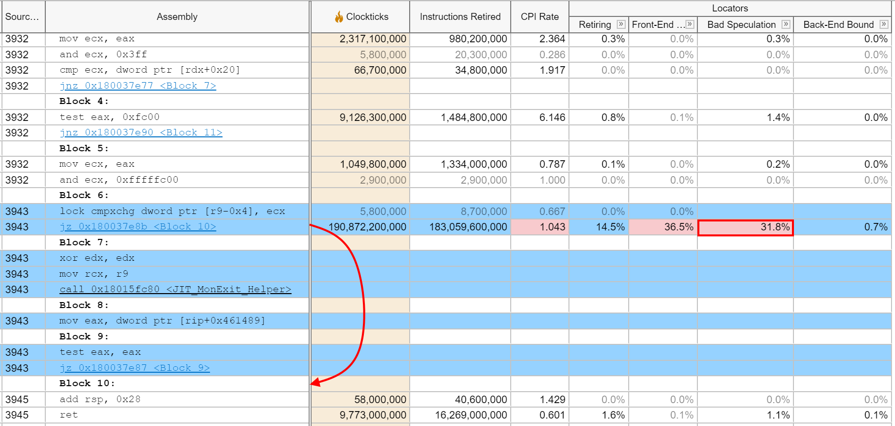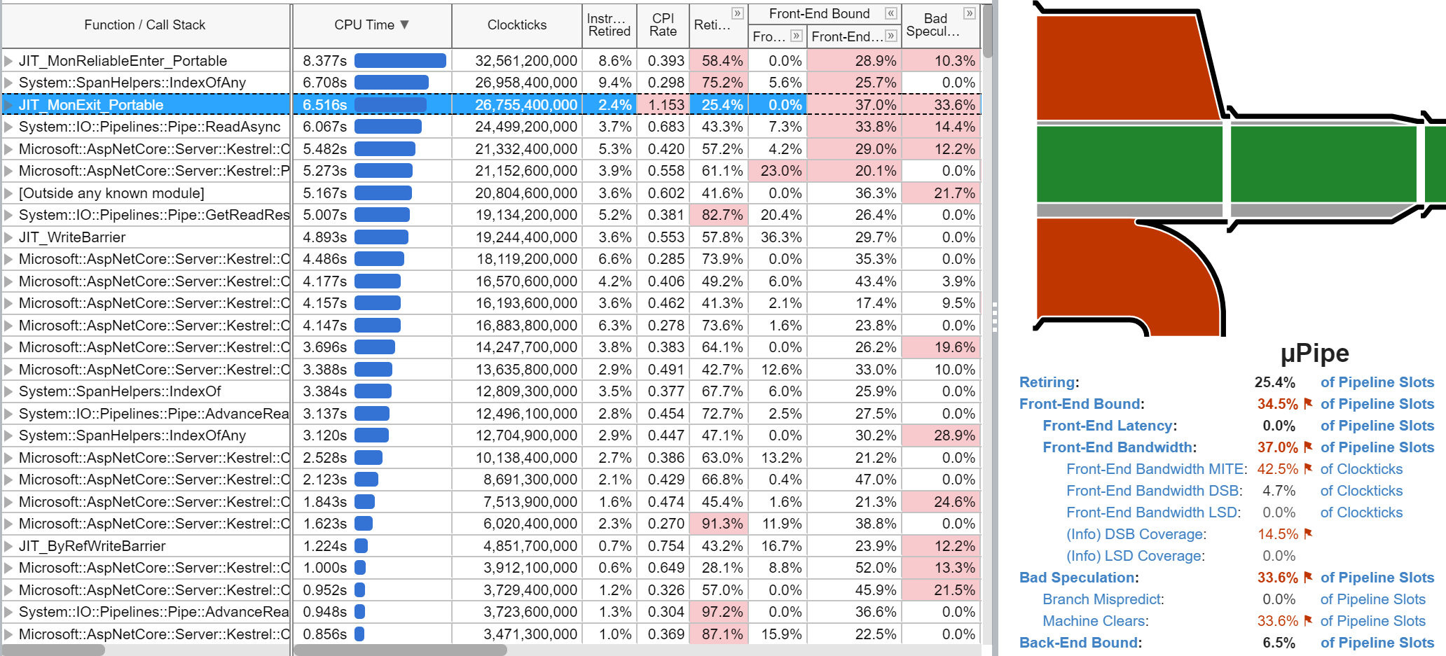 There is a high misprediction rate for the common path in JIT_MonExit_Portable