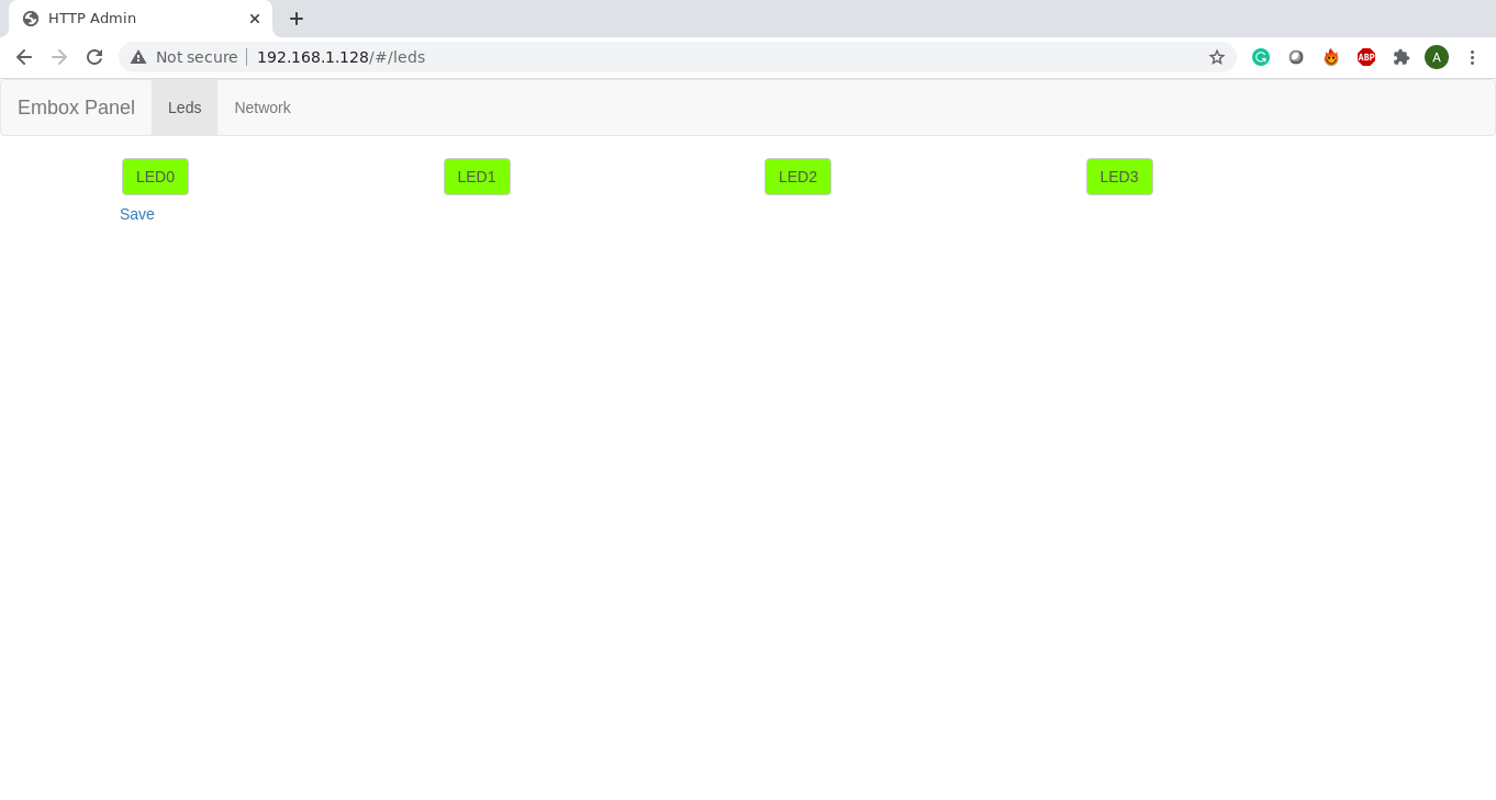 You can control LEDs over HTTP server running on Embox. In this example LEDs states and current network settings can be stored/restored from the internal flash filesystem.