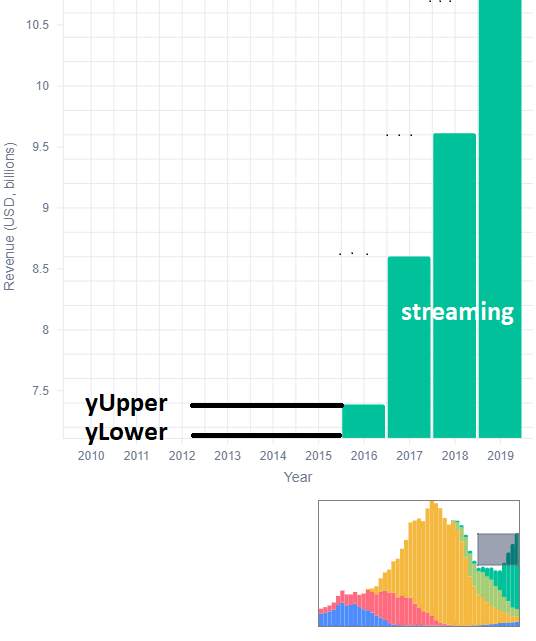 {2016: [ streaming: {yTotal: number; yUpper: number, yLower: number}], 2017: [...], 2018: [...], 2019:[...]}