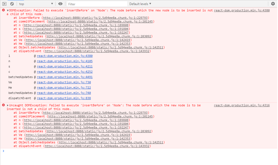 DOMException: Failed to execute 'insertBefore' on 'Node': The node before which the new node is to be inserted is not a child of this node.