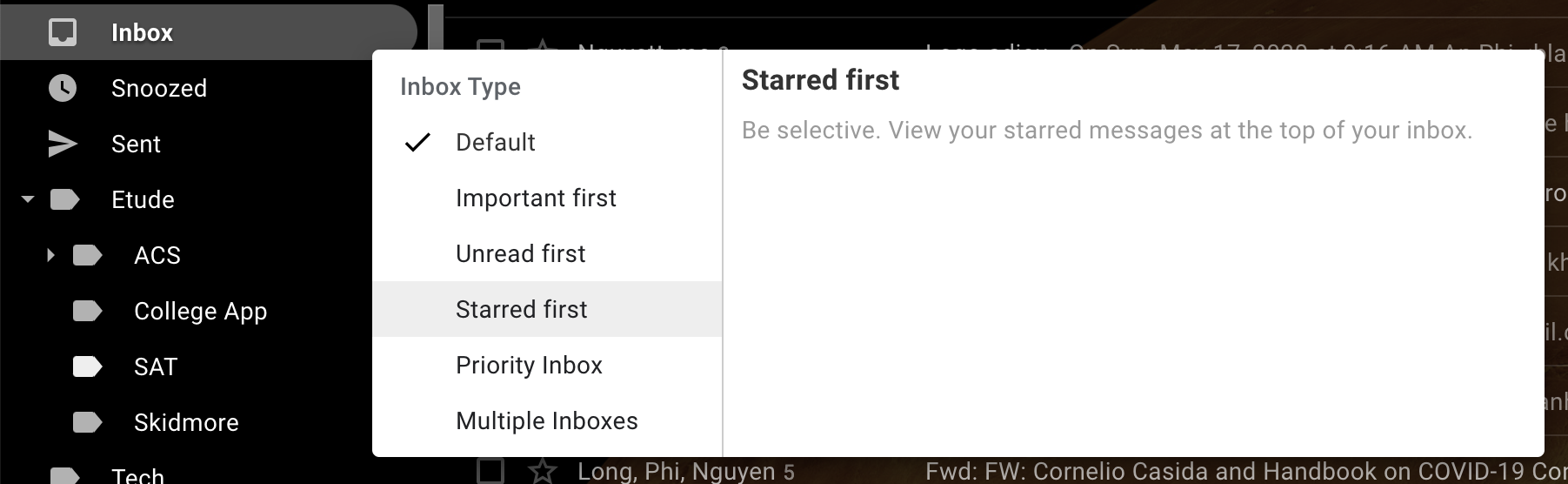 CONSIDERWe can explore the design fromVS Codedropdown inSettingsthat shows more information about the currently focused item in the dropdown, or Gmail when hovering on each Inbox folder