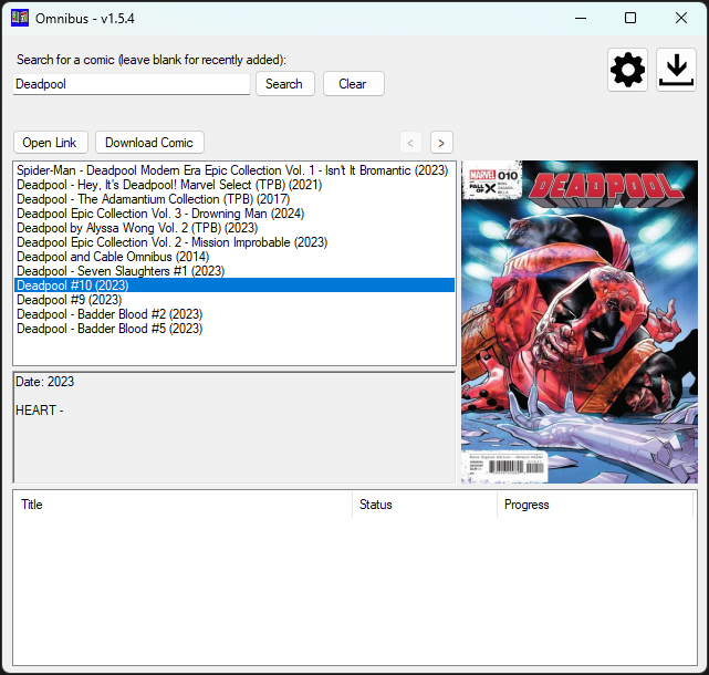 Omnibus is a Windows program that lets you search for and download comics that are added to GetComics.info easily.