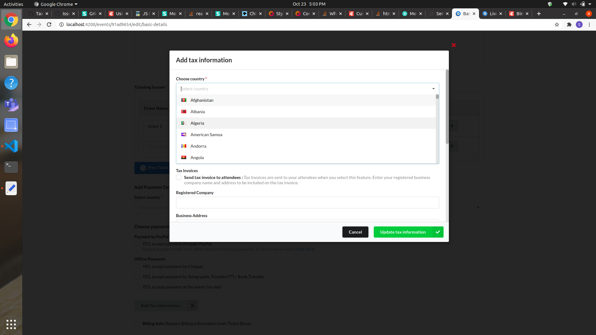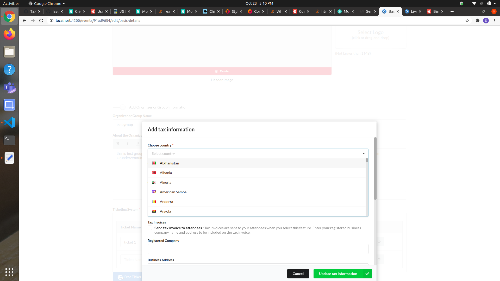 - When a user closes the pop up using the X button and then clicks add tax information again nothing happens. Expected: It should open the pop up again.