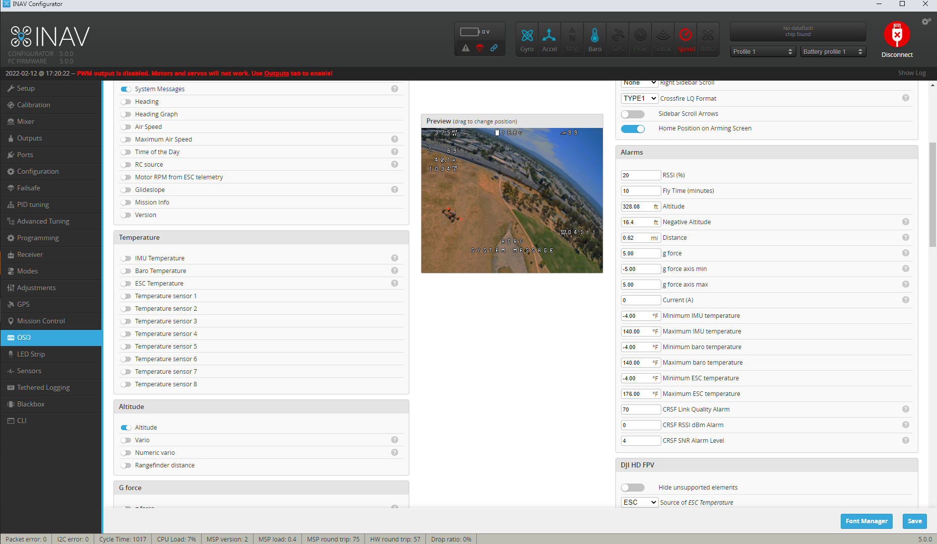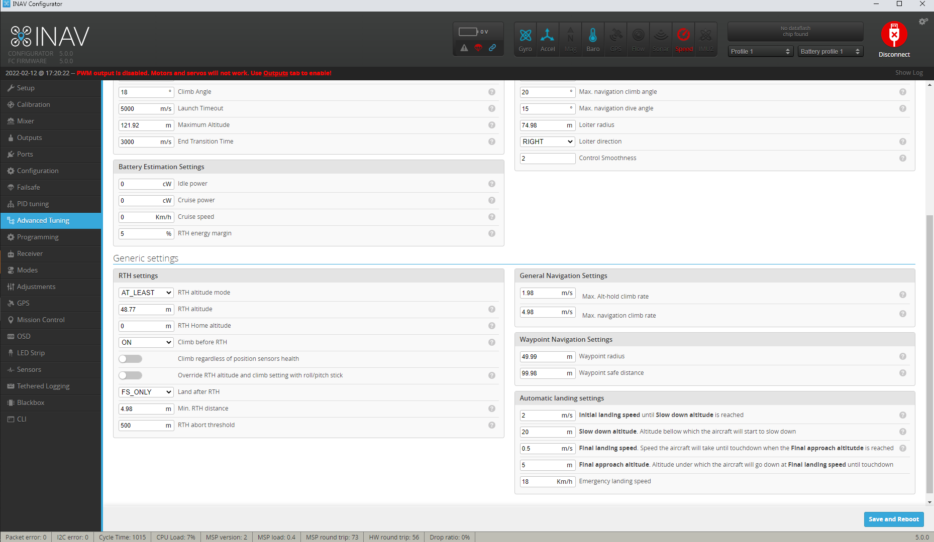 Alignment all looks fine. Note the speeds in the General Navigation Settings and Automatic landing settings are now in metres per second for vertical speeds. This matches the units used in the OSD for the digital vario. Imperial is feet per second and GA is 100 feet per second.