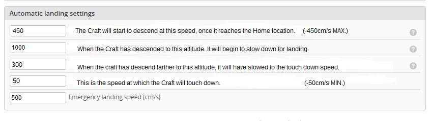 @MrD-RC I noticed in the 5.0 build, the Due to this requiring a fix... I thought I would suggest an idea. And due to the current label's in the Configurator having nothing to do with the CLI commands for these set points, I thought it could be more directly worded to something like this. Which explains exactly what each of these settings do. It does require a change in the code, to swap setting 3 and 4. Which makes it more systematic, according to the landing sequence than at present. What do you think? |