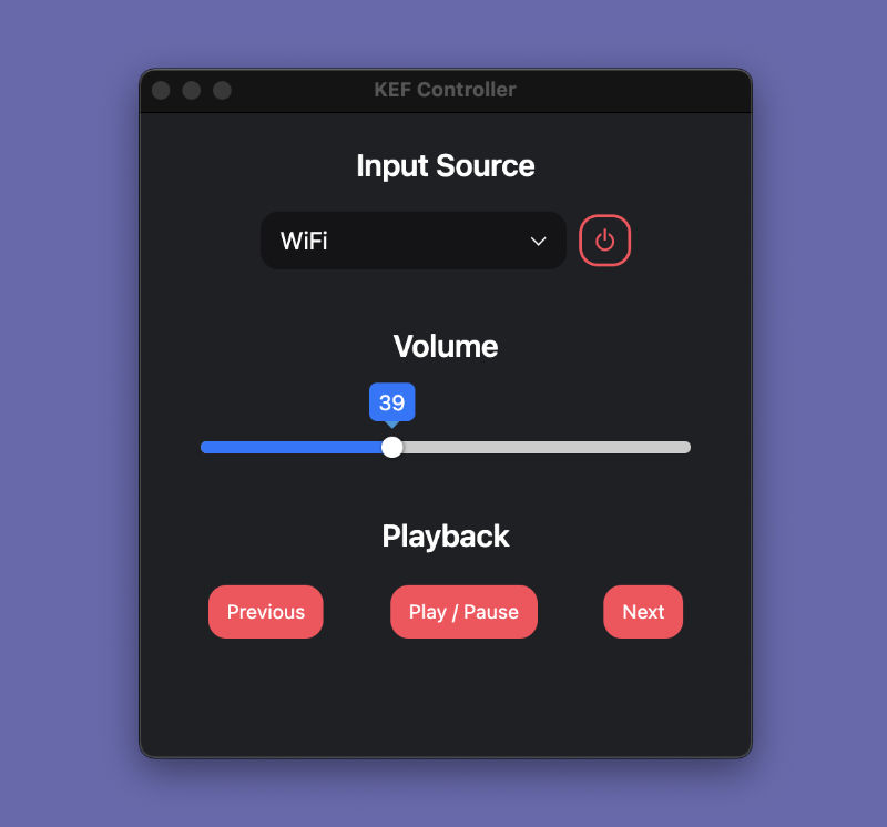 An electron-based controller for KEF wireless speakers. Only tested with KEF LSX, but the LS50 should work as well.