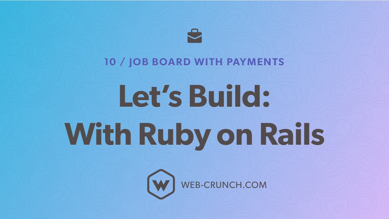 Welcome to what I'll be calling my tenth installment to my Let's Build: With Ruby on Rails series. In this build I'll cover how to build a filterable job board using Stripe as a payment gateway to post new jobs.