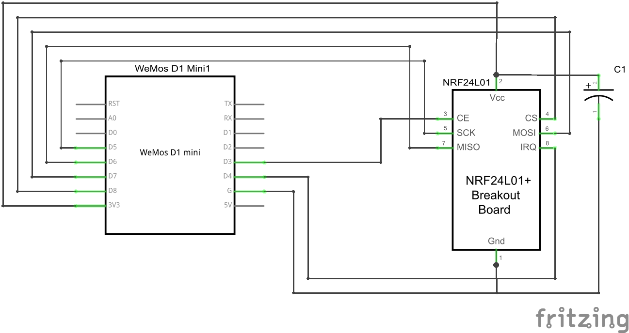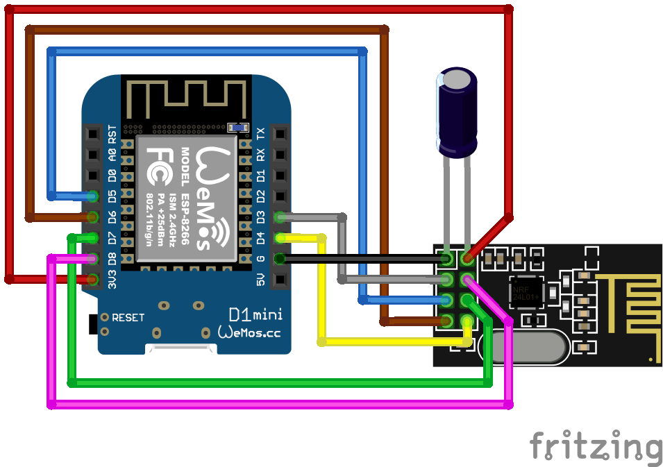 This is an example wiring using a Wemos D1 mini.