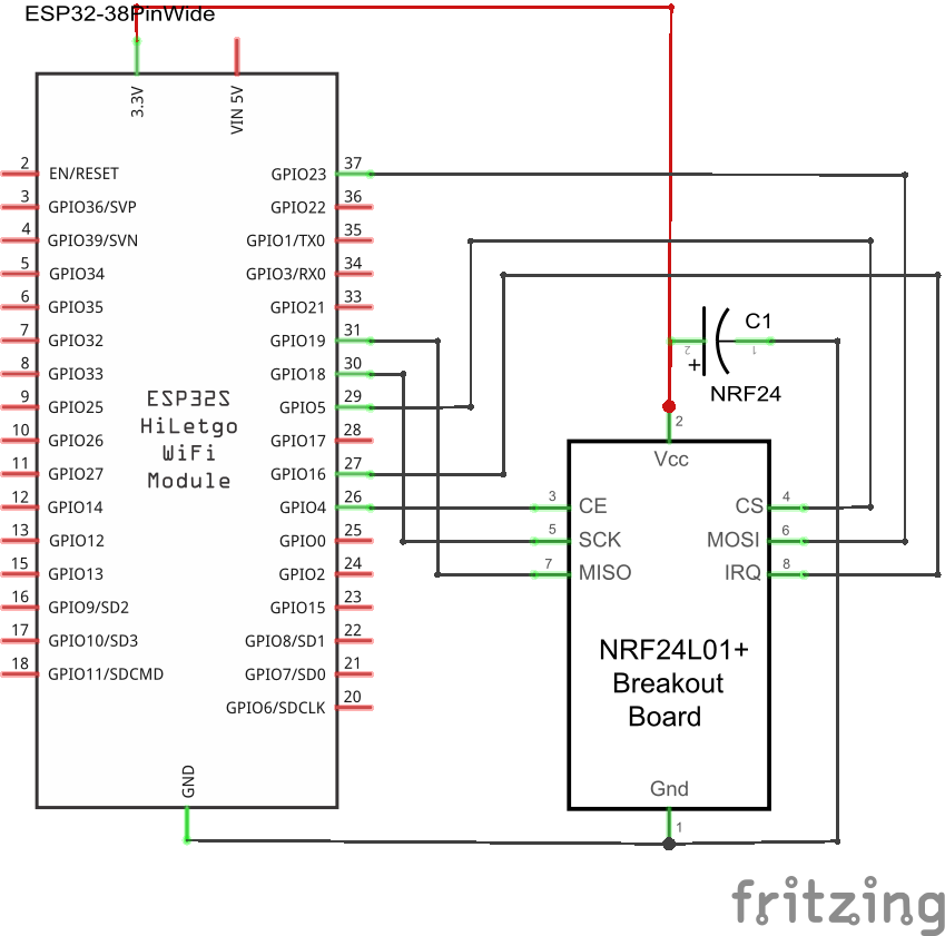 Example wiring for a 38pin ESP32 module