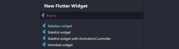 When creating a new file, choose the "New Flutter Widget" option. Enter the name for your widget and select its type.