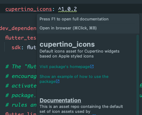 Just hover over the package's name in the pubspec.yaml - it's as easy as that!