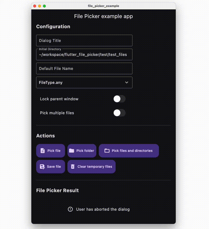 See the API section of the File Picker Wiki or the official API reference on pub.dev for further details.