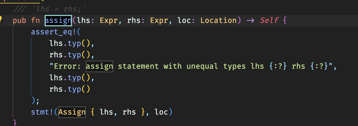 | Stmt::assign(self, rhs, loc) | ||