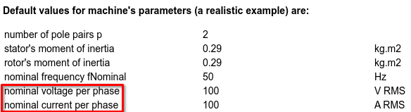 parameter Modelica.Units.SI.Current IsRef = 100 " RMS reference phase current";
