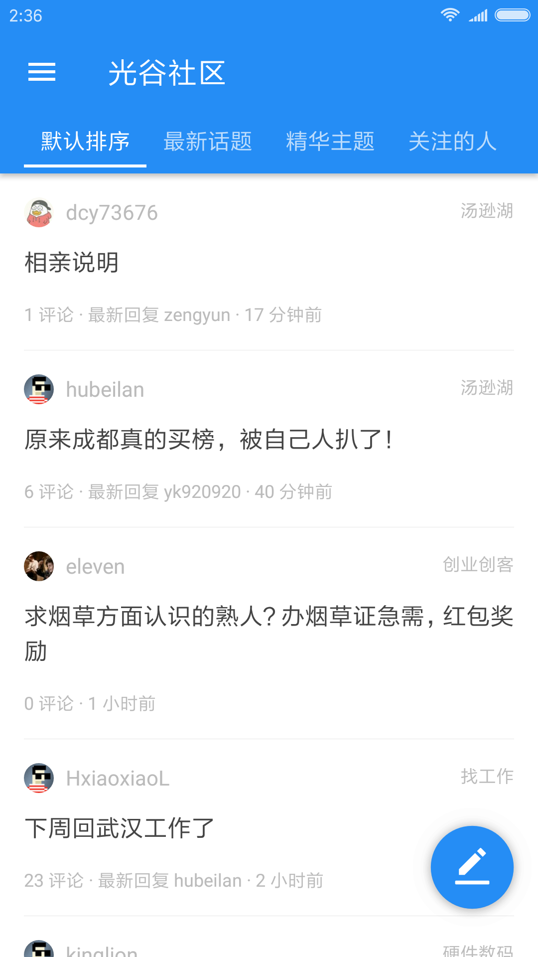 - 首页主题列表 三种视图:默认排序、最新话题、精华主题