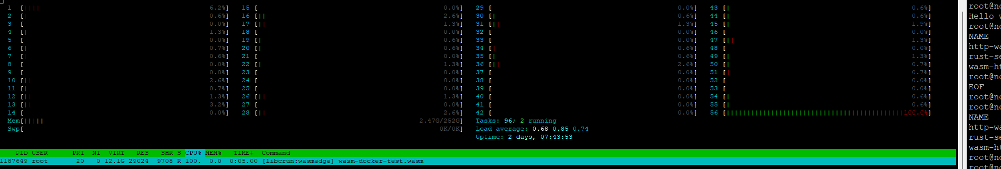 I was trying to run this example in knative and observe its behavior... and i noticed ... even though the request is completed the wasm module/pod is consuming 100 % CPU utilization. Please see the image below.
