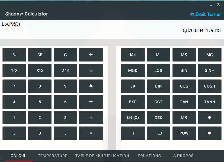 Basic & Scientific Calculation Tab: In this tab we have all the features that a calculator integrates plus scientific functions as well as those of programmers (binary, hexa, etc.).