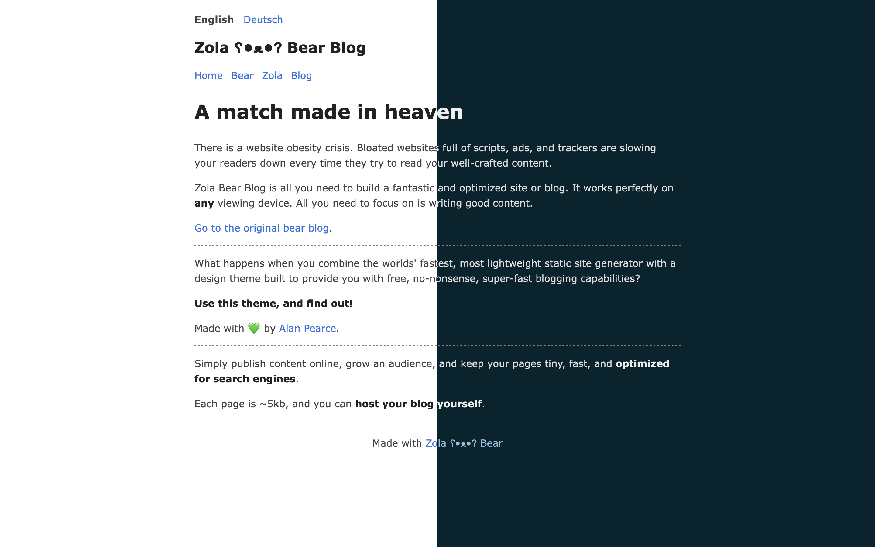 A special thank you goes out to Herman, for creating the original ʕ•ᴥ•ʔ Bear Blog and Jan Raasch for creating the hugo port of the Bear Blog theme.