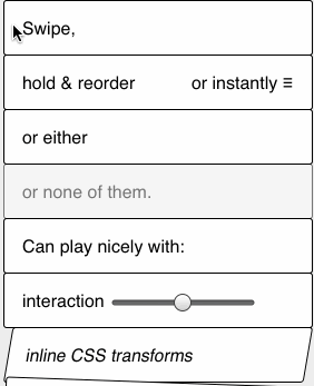 A tiny library for interactive swiping and reordering of elements in lists on touch screens. No dependencies. BSD Licensed.