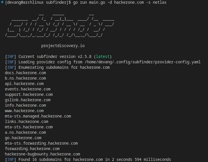 [INF] Found 16 subdomains for hackerone.com in 2 seconds 392 milliseconds