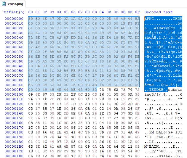 An examination of icons/cross.png shows that the first 250 bytes comprise the entirety of the PNG's datastream.