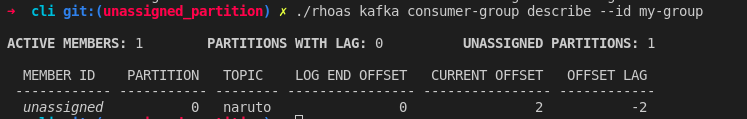 1. Run consumer-group describe for a consumer group with inactive member(s).