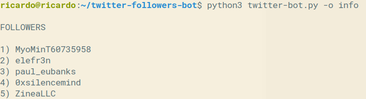 python twitter-bot.py -q "oscp" -l 5 -o follow