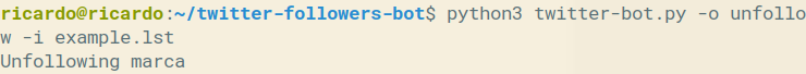 python twitter-bot.py -o follow -q {query} -l {limit}