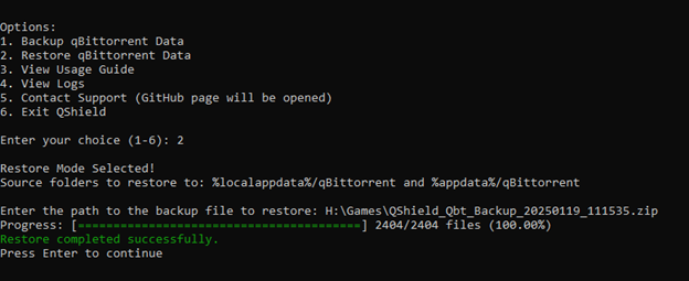 Welcome to Pandora QShield CLI – a user-friendly backup and restore solution designed to keep your qBittorrent settings secure! With Pandora QShield, you can safely back up and restore your application settings, ensuring your preferences and configurations are preserved during Windows reinstallation, migration, or qBittorrent reinstallation.