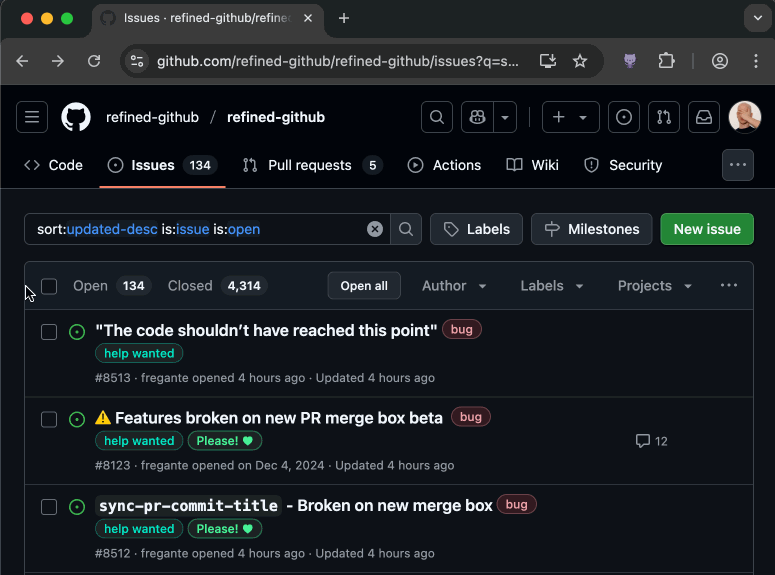 If you love Refined GitHub, consider sponsoring or hiring the maintainer @fregante