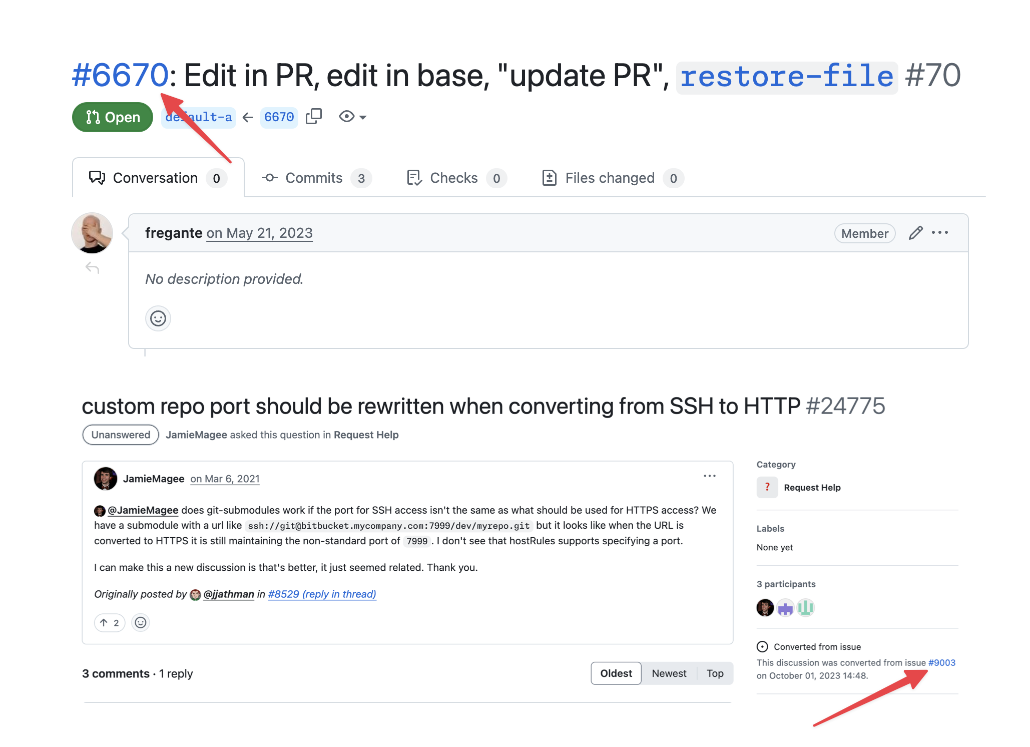 | Shows how far behind a PR head branch is + tells you its base commit | Lets you hide every event except comments or unresolved comments in issues and PRs |