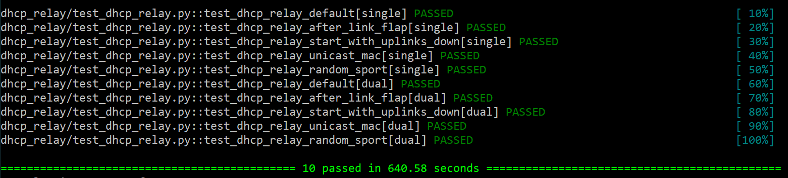 All tests will first run in single tor testing mode and then in dual tor testing mode. The switch between different testing modes is realized by adding/deleting <subtype=DualToR> in configdb followed by dhcp docker restart. Shell output is checked to ensure that dhcp docker is up before proceeding with tests.