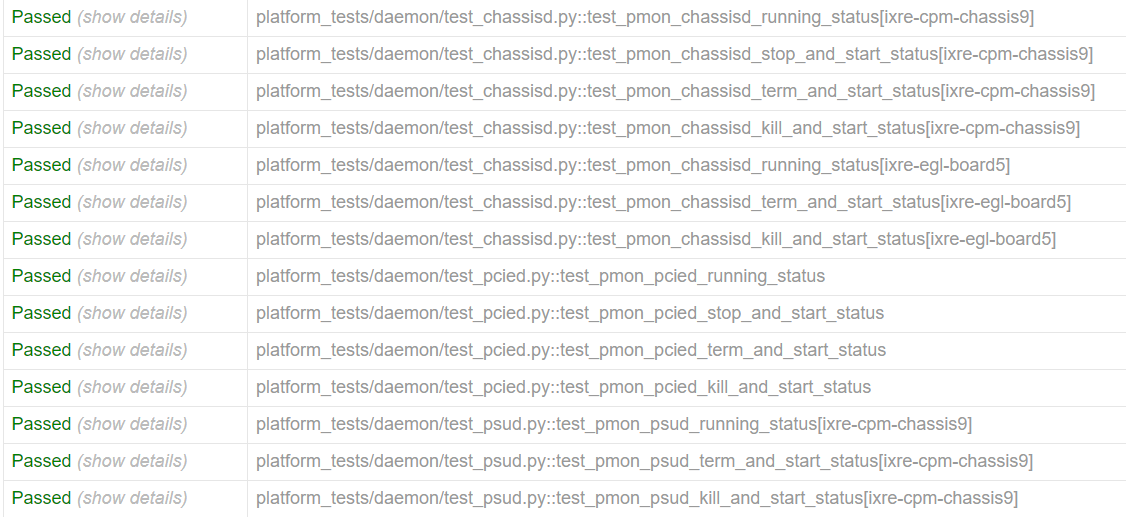 …#8776) Fix for PID assertion issue - PSUD and CHASSID platform cases Fixing up other chassisd and psud tests to poll for deamon to restart with bigger pid than before --------- Cherry-Pick PR #7781 : For resolving conflicts. Fix for PID assertion issue - PSUD and CHASSID platform cases. Description of PR Fixing up other chassisd and psud platform tests to poll for deamon to restart with bigger pid than before. This is an extension of PR #7150. Summary: Fixes # (issue) Fixes PSUD 'stop & start', 'term & start' and 'kill & start' test cases by making sure the daemon restarted has bigger PID than before. Fixes CHASSID 'stop & start' and 'kill & start' test cases by making sure the daemon restarted has bigger PID than before. Type of change Bug fix Testbed and Framework(new/improvement) Test case(new/improvement) Back port request 201911 202012 202205 Approach What is the motivation for this PR? Currently PSUD and CHASSID platform test cases like 'term & start', 'kill & start' and 'stop & start' don't check if the restarted daemon has bigger pid than the previous one or not. Currently "check_expected_daemon_status" doesn't verify about pre-daemon-pid, just returns TRUE even if the status is RUNNING with old PID. How did you do it? By invoking 'check_if_daemon_restarted' method on the above-mentioned cases and making sure the new pid is bigger than the old pid. How did you verify/test it? Ran the respective platform tests against a multi-asic line card in a T2 chassis. Co-authored-by: sanmalho <sandeep.malhotra@nokia.com>, jianquanye@microsoft.com