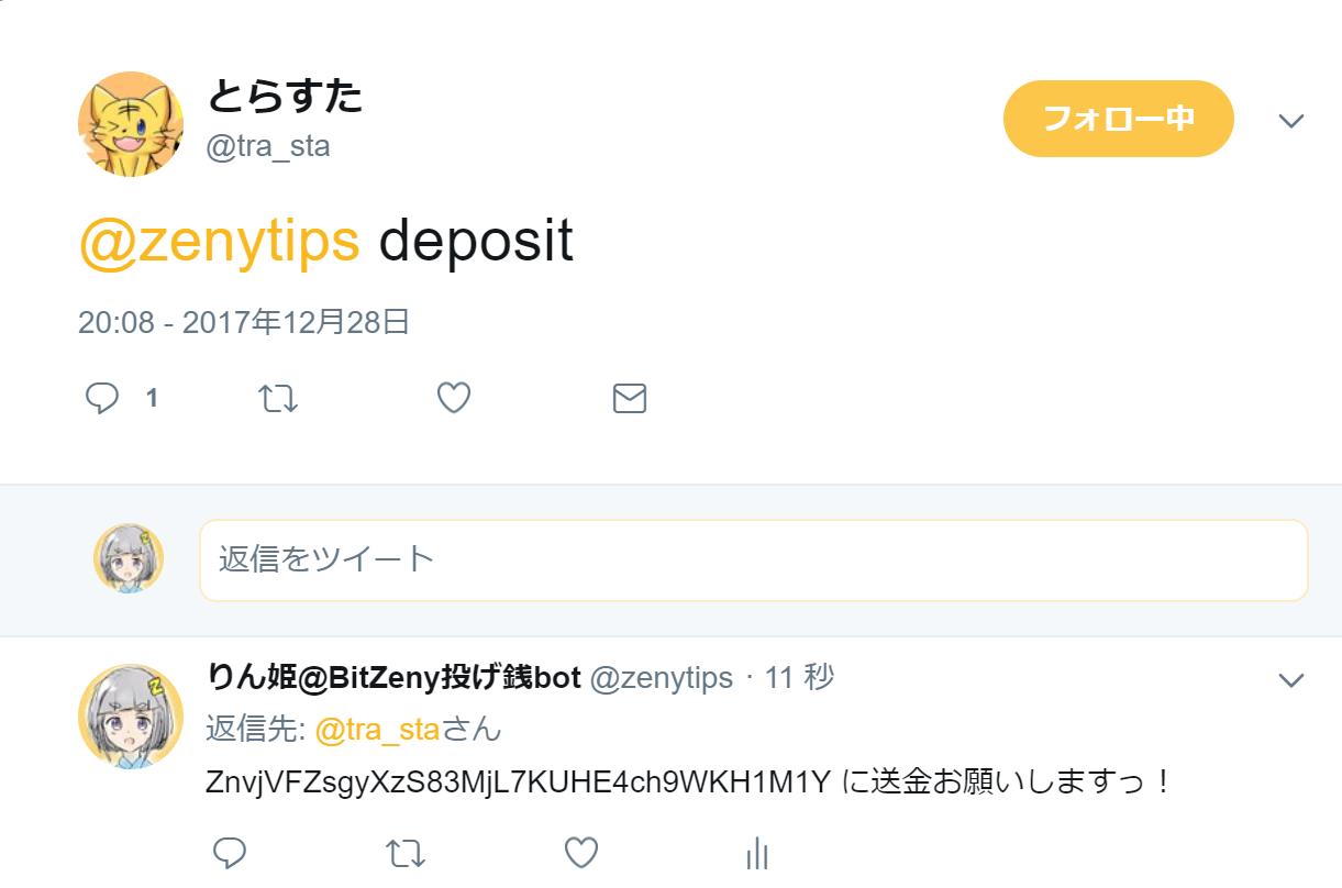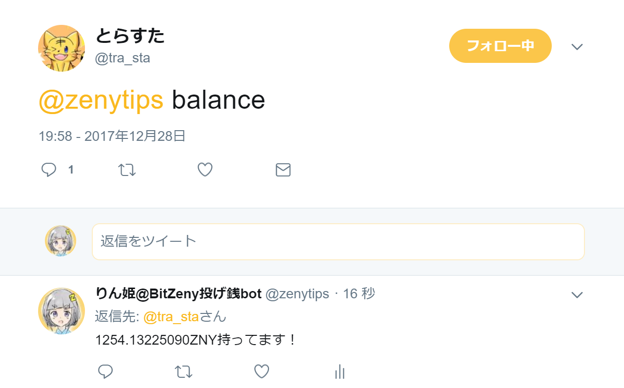 例:@zenytips tip @tra_sta 3.9 ありがとう!