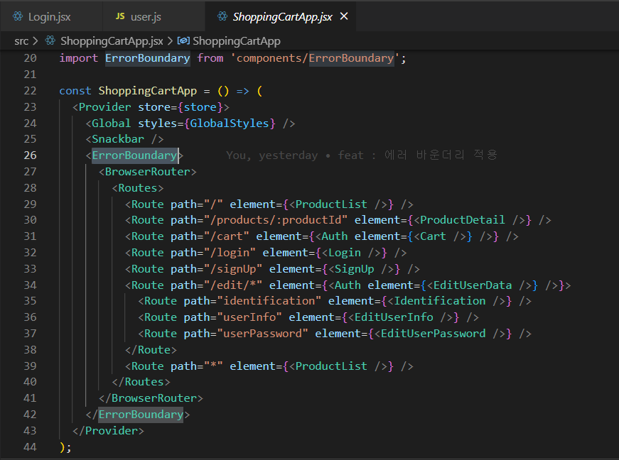 만일의 오류 발생에 대비하여, 에러 바운더리를 만들어 적용해주었습니다.