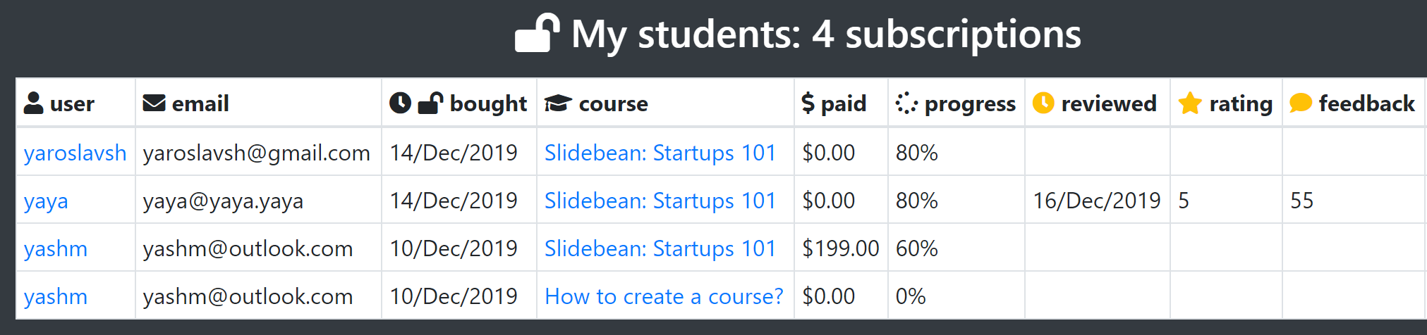 Users-Teachers can earn money on their courses (no payment system connected yet) -
